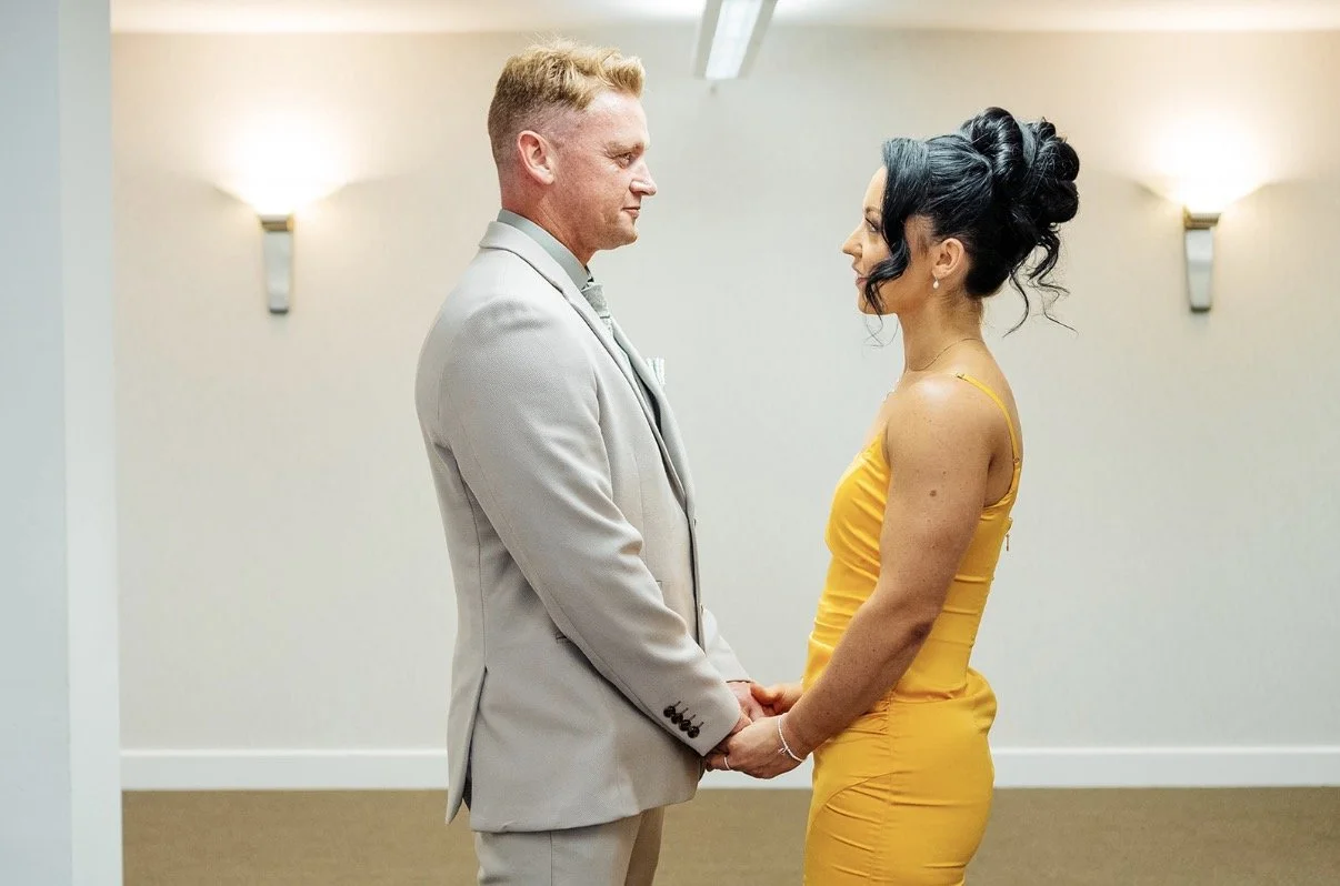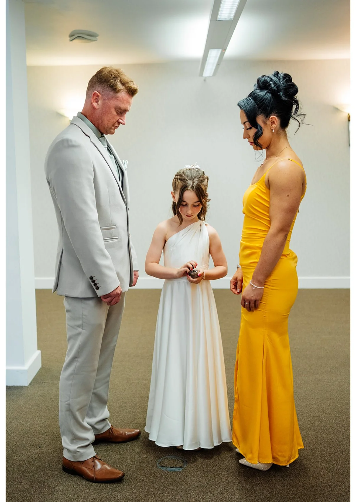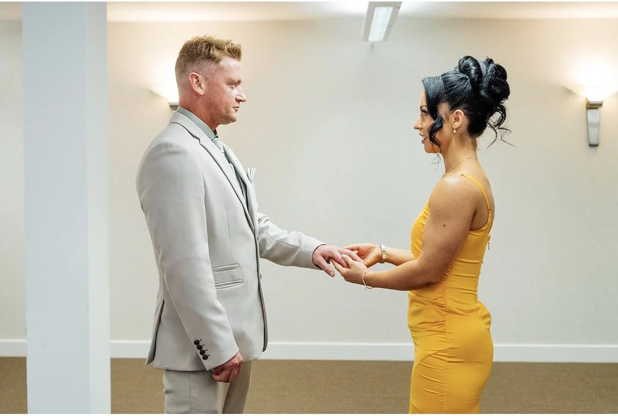 Look at the body language. The formal stance. The "we're getting through this" posture. That gorgeous couple standing stiff as boards, hands clasped in front of them, barely touching. Even their little one looks uncertain. The registrars were nice, but they were still strangers who only met this couple a few minutes before their ceremony and you can feel and see this disconnect! This is the disconnect that Iâm always talking about on my TikTok channel, Iâve seen this disconnect hundreds of times, this always happens when couples invite strangers, government officials into their venue⌠it feels all wrong.